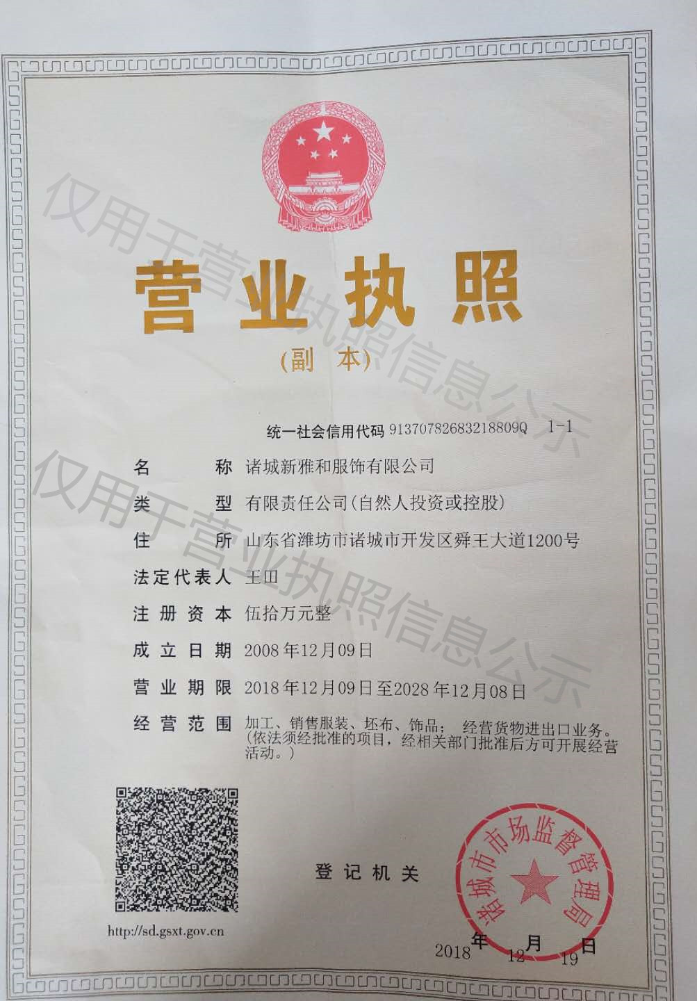 諸城新雅和服飾有限公司的誠(chéng)信、實(shí)力、產(chǎn)品質(zhì)量、管理團(tuán)隊(duì)獲得業(yè)界及日本眾多客戶的認(rèn)可與贊賞。下一個(gè)五年計(jì)劃,我們將借鑒、學(xué)習(xí)國(guó)內(nèi)外企業(yè)的發(fā)展經(jīng)驗(yàn),積極開(kāi)發(fā)具有時(shí)尚文化元素、功能性的針織服飾,服務(wù)于社會(huì),服務(wù)于廣大消費(fèi)者;為社會(huì)、為城市、為消費(fèi)者制造并展現(xiàn)美麗、健康、快樂(lè)的針織服裝服飾。 公司已經(jīng)通過(guò)安全生產(chǎn)標(biāo)準(zhǔn)化管理評(píng)審,成為濰坊地區(qū)安全生產(chǎn)達(dá)標(biāo)企業(yè)。